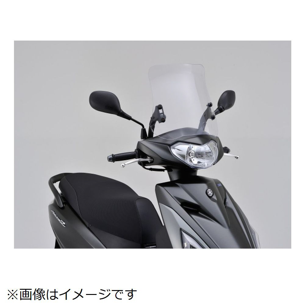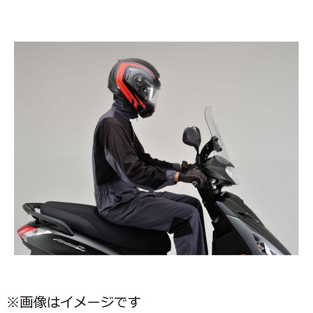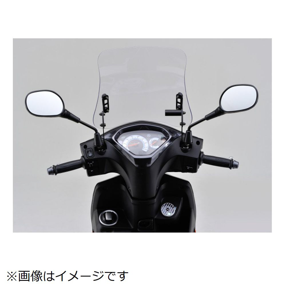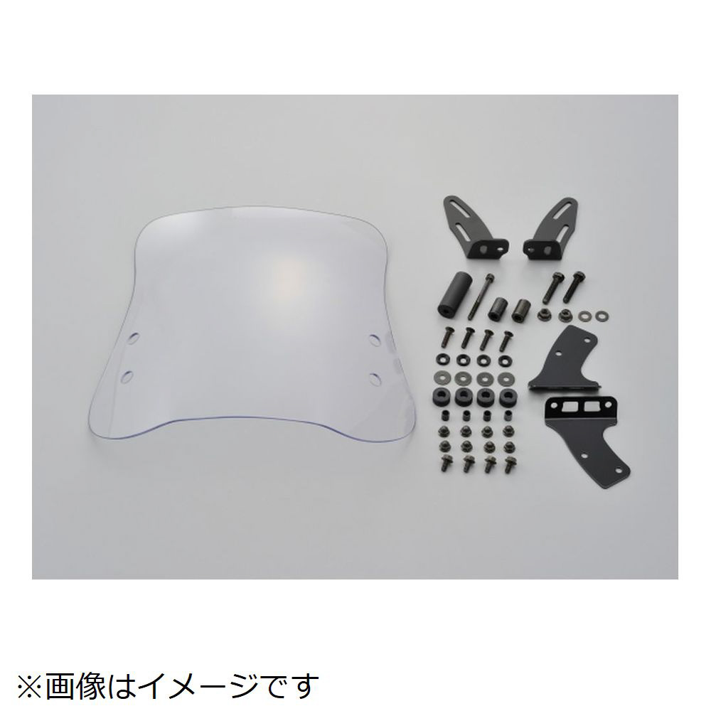 スポーティーなエアロ形状フォルムのウインドシールドセット。スクリーンエンドの小さく跳ね上がったスポイラーが正面から来た空気を上部へ送り、体への抵抗を軽減します。ウインドシールドは、状況に合わせ約10度の範囲内で角度調整が可能です。ウインドシールドの素材は、同厚のアクリルに対し約30倍の強度を持つポリカーボネート(厚さ3mm)を採用。また、耐傷性,耐UV性を向上させるためにハードコーティングを施し、高い透明度と耐久性を両立しました。