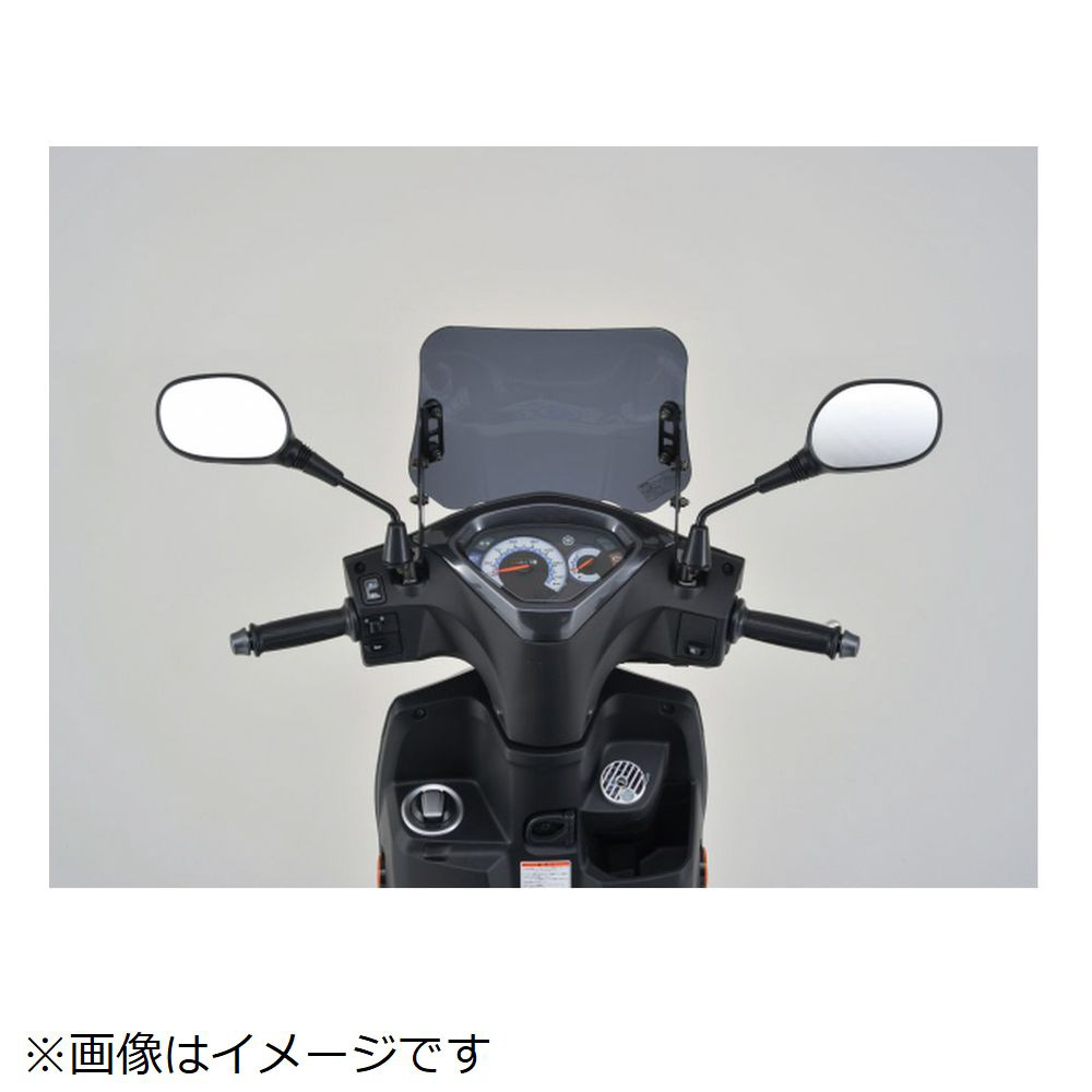 スポーティーなエアロ形状フォルムのウインドシールドセット。スタイリッシュなデザインを演出するショートスモークタイプ。正面から来た空気を上部へ送り、体への抵抗を軽減します。ウインドシールドは、状況に合わせ約10度の範囲内で角度調整が可能です。ウインドシールドの素材は、同厚のアクリルに対し約30倍の強度を持つポリカーボネート(厚さ3mm)を採用。また、耐傷性,耐UV性を向上させるためにハードコーティングを施し、高い透明度と耐久性を両立しました。