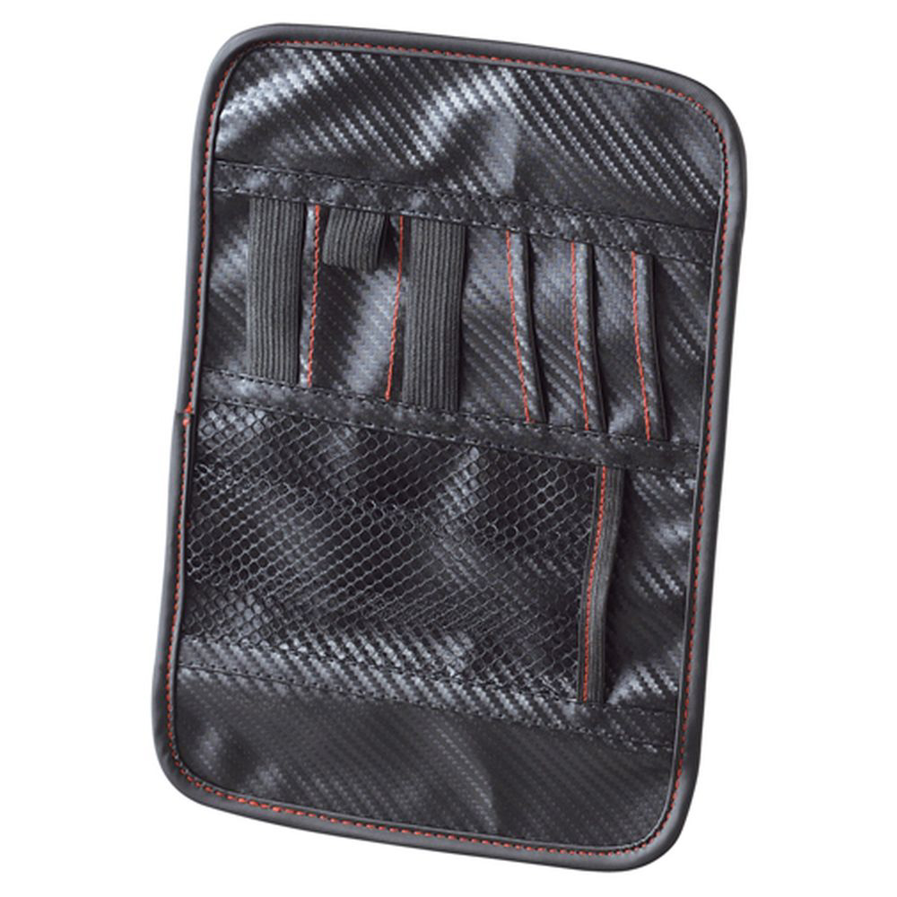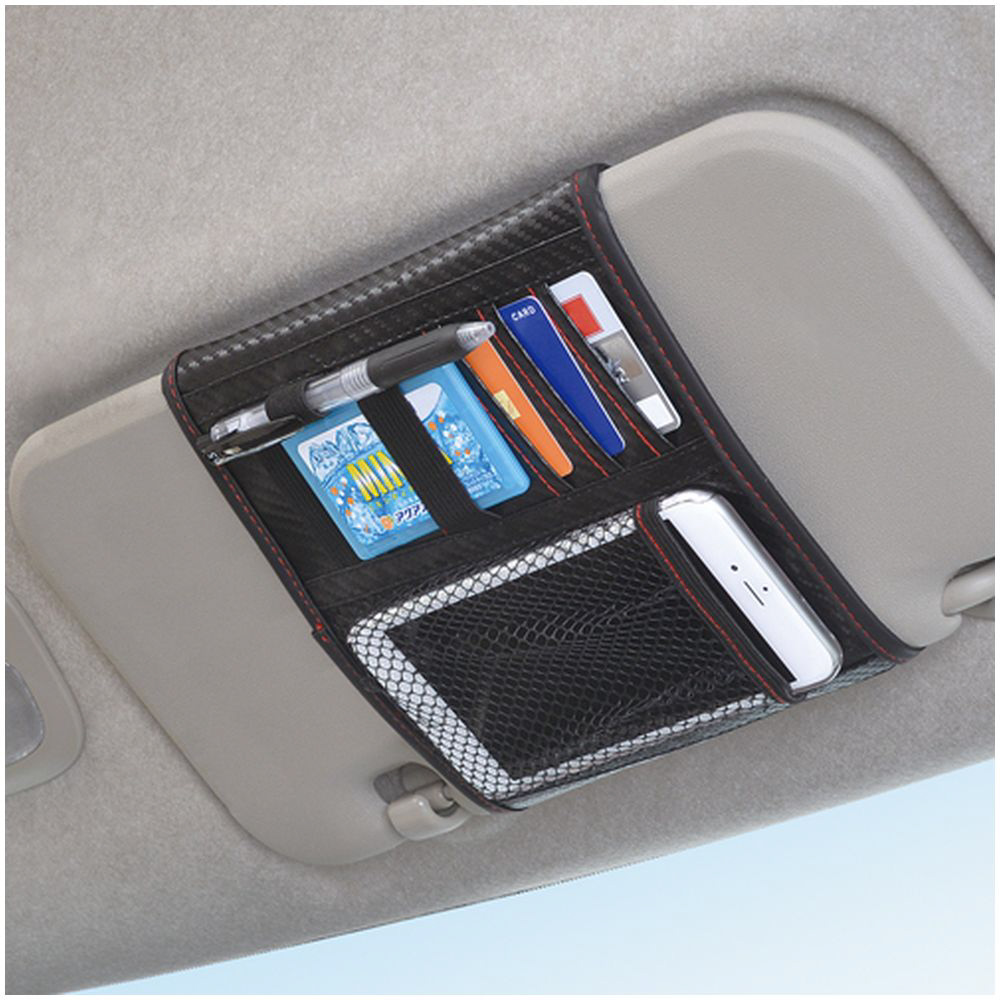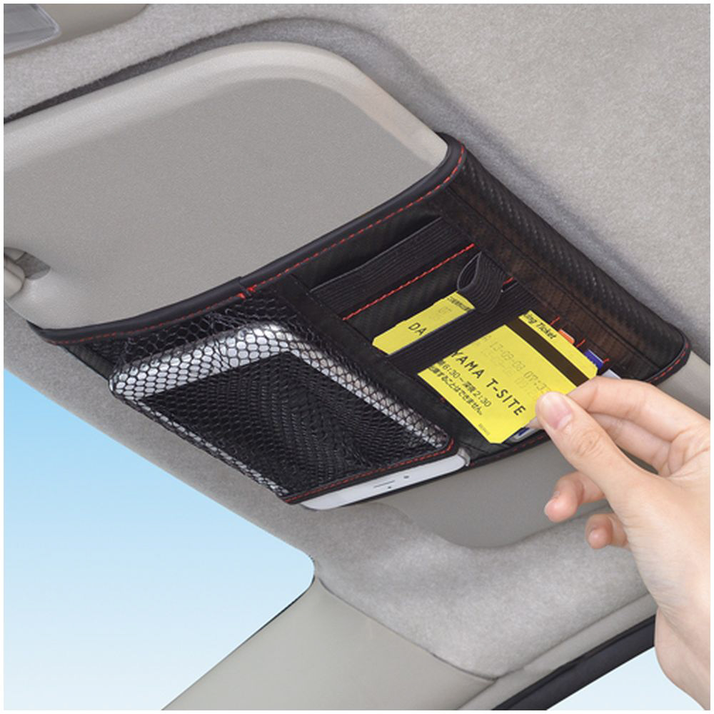 サンバイザーに取り付ける便利なカーボン柄のポケットです。