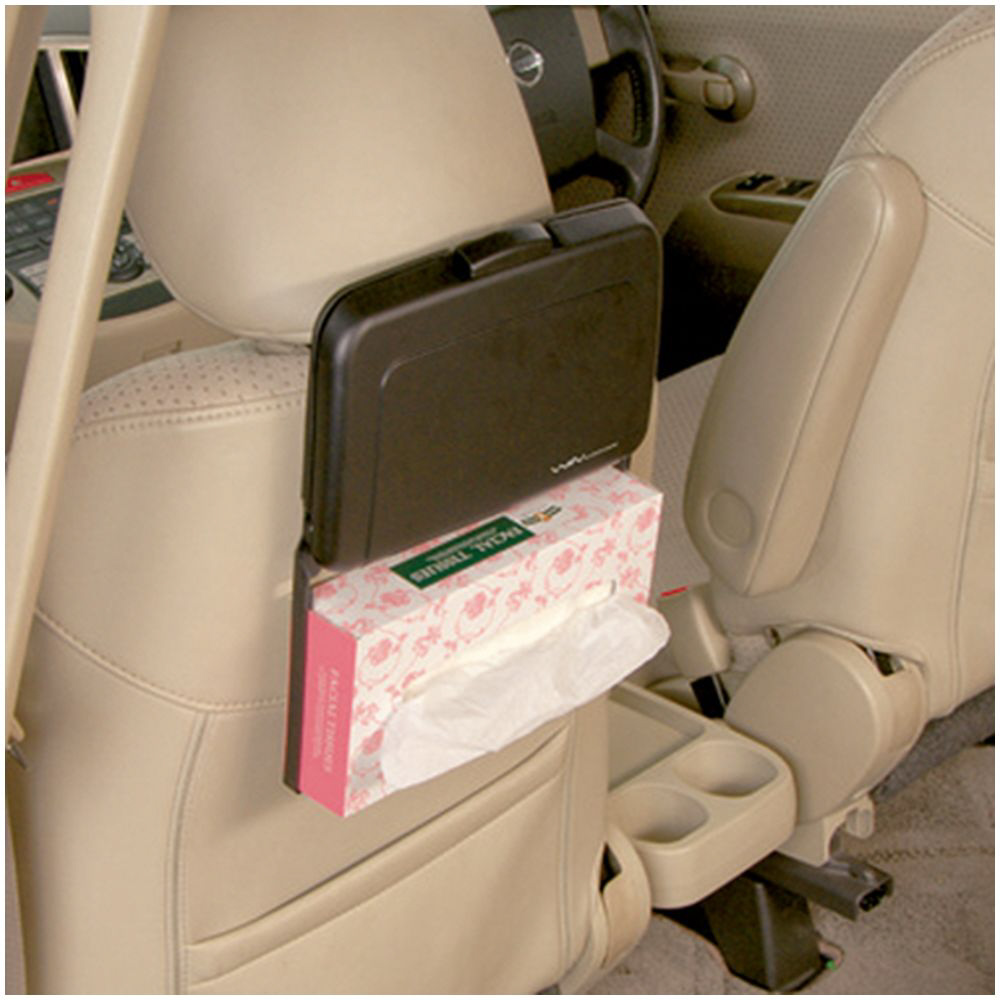 ヘッドレストが外れない車種にもご使用できるコンパクトで大変便利なリアシート用トレイです。