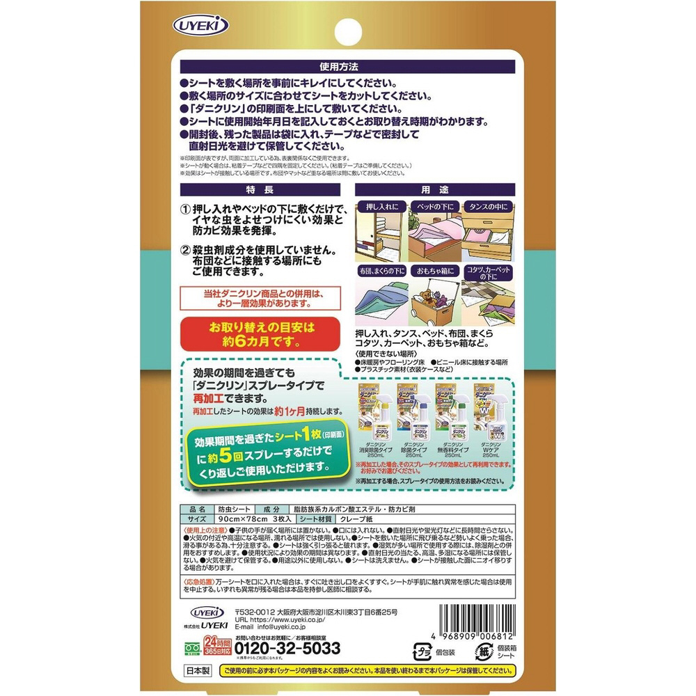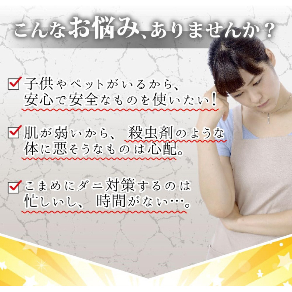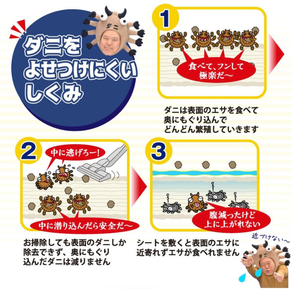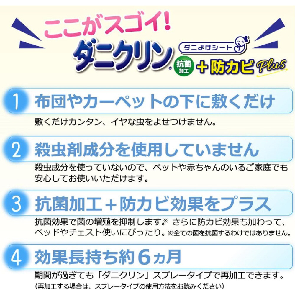 ※期間が過ぎても別売りの「ダニクリン」スプレータイプで再加工できます。再加工したシートの効果は約1ヶ月持続します。