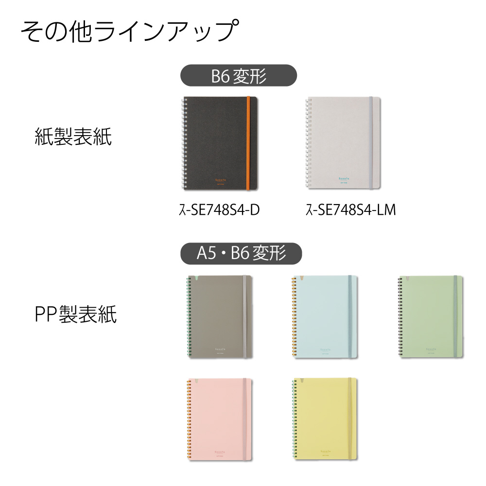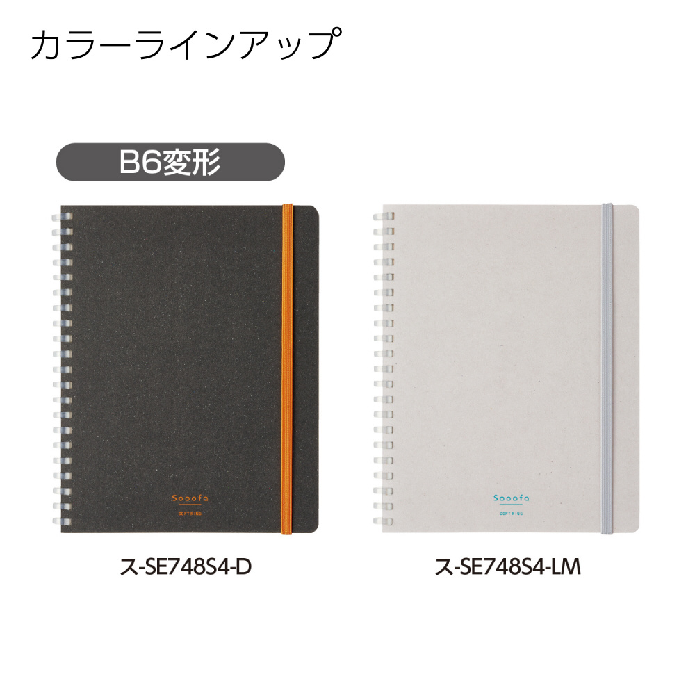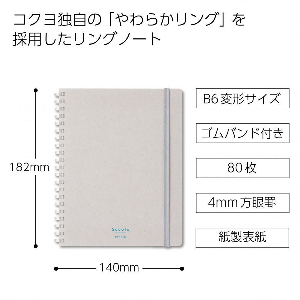 | 商品名 | ソフトリングノート(板紙表紙) Sooofa(スーファ) ライトグレー SE748S4-LM [B6 /4mm /方眼罫線] |