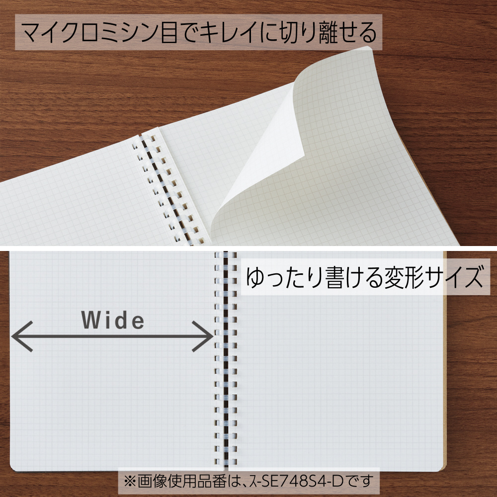 | 仕様1 | 紙質/中紙:上質紙、表紙:板紙、リング:オレフィン系樹脂バイオマスプラスチック度95% |