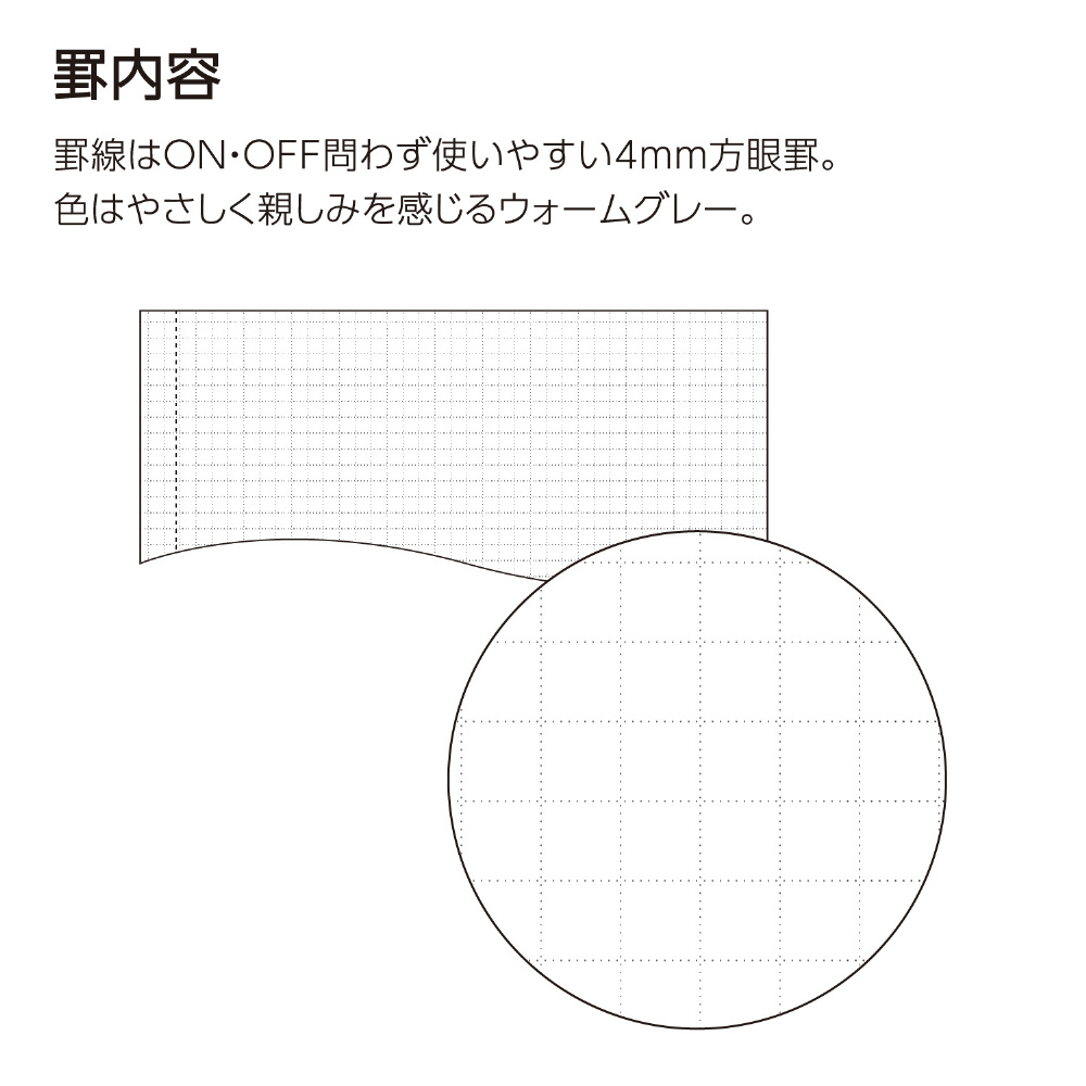 ●罫線は4mm方眼罫で色はやさしく親しみを感じるウォームグレーです。
