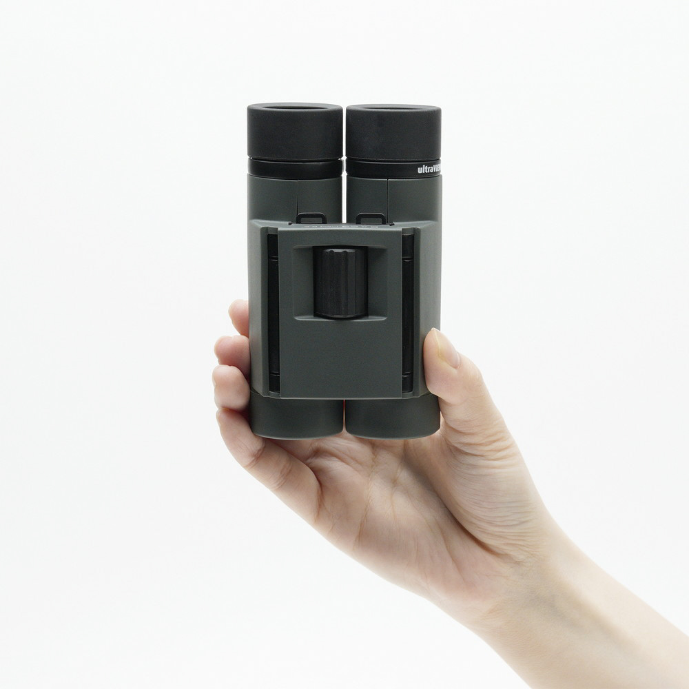 小さく折りたため、携帯に便利です。また、狭い眼幅に対応できるためお子様でも使用することができます。本体ボディは、軽量で堅牢性を持つアルミダイキャスト採用。298g(8x25)と軽量化を図っています。