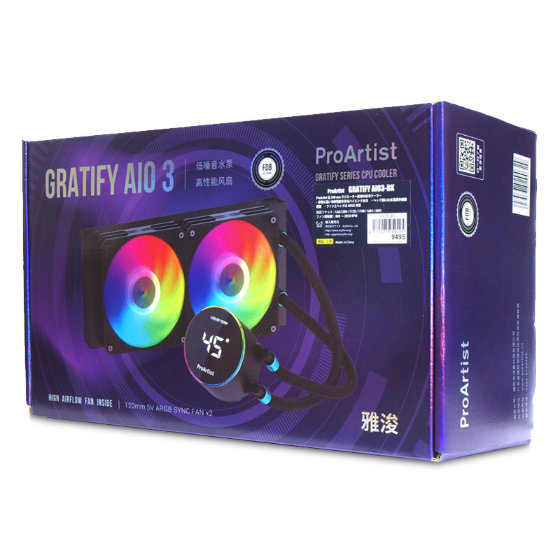 ProArtistブランドのマルチソケット対応オールインワン水冷CPUクーラー「GRATIFY AIO3-BK」