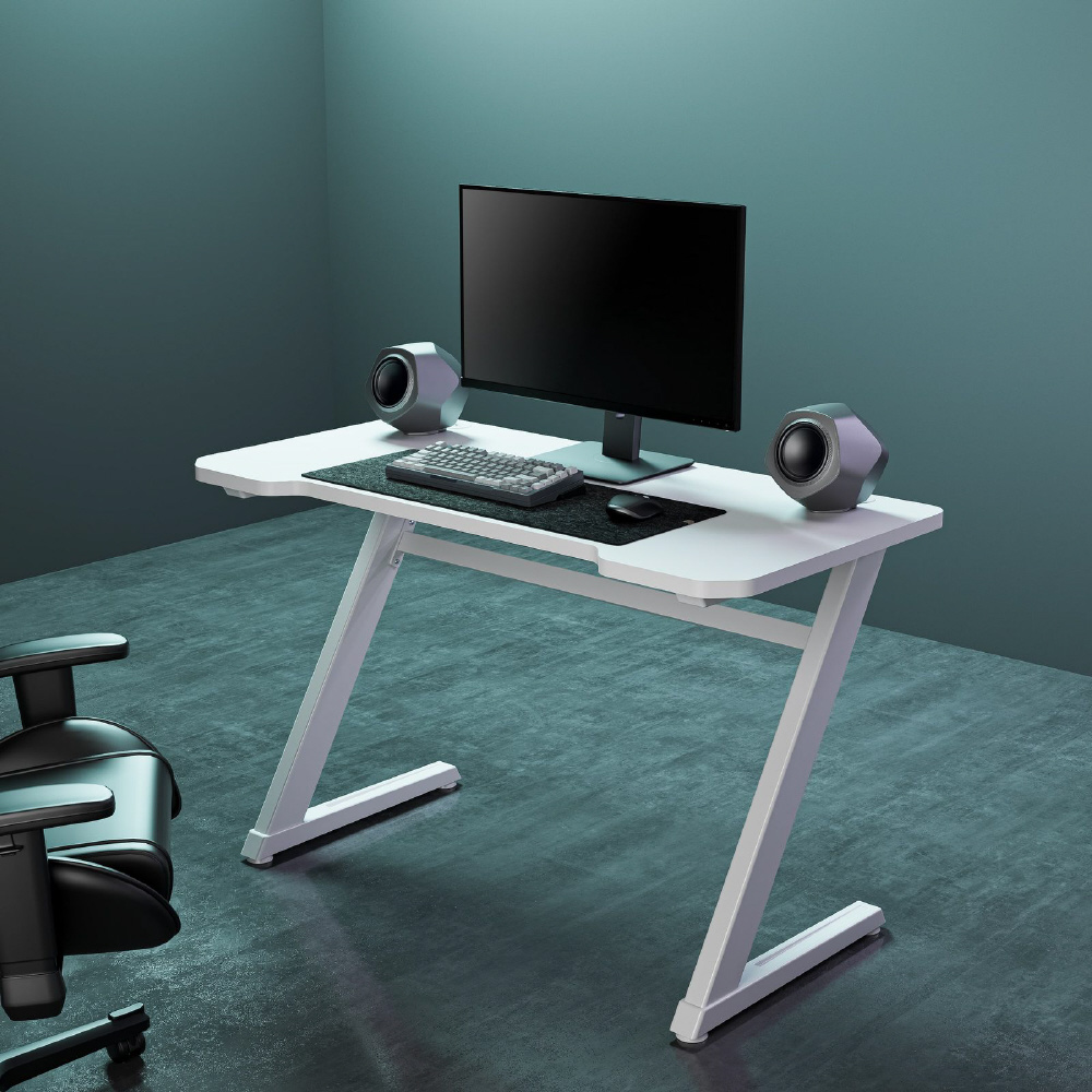 脚がZ形状のひと味違うデスク。幅1200mm x 奥行600mmの天板で広々とした作業スペースが確保できます。ゲーム環境だけでなくテレワークにも。