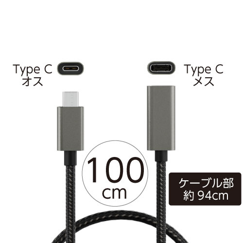 USB-C延長ケーブル [USB-C オス→メス USB-C /充電 /転送 /1m /USB Power Delivery /60W /USB3.1]  ブラック AR-CCEX940 [USB Power Delivery対応]