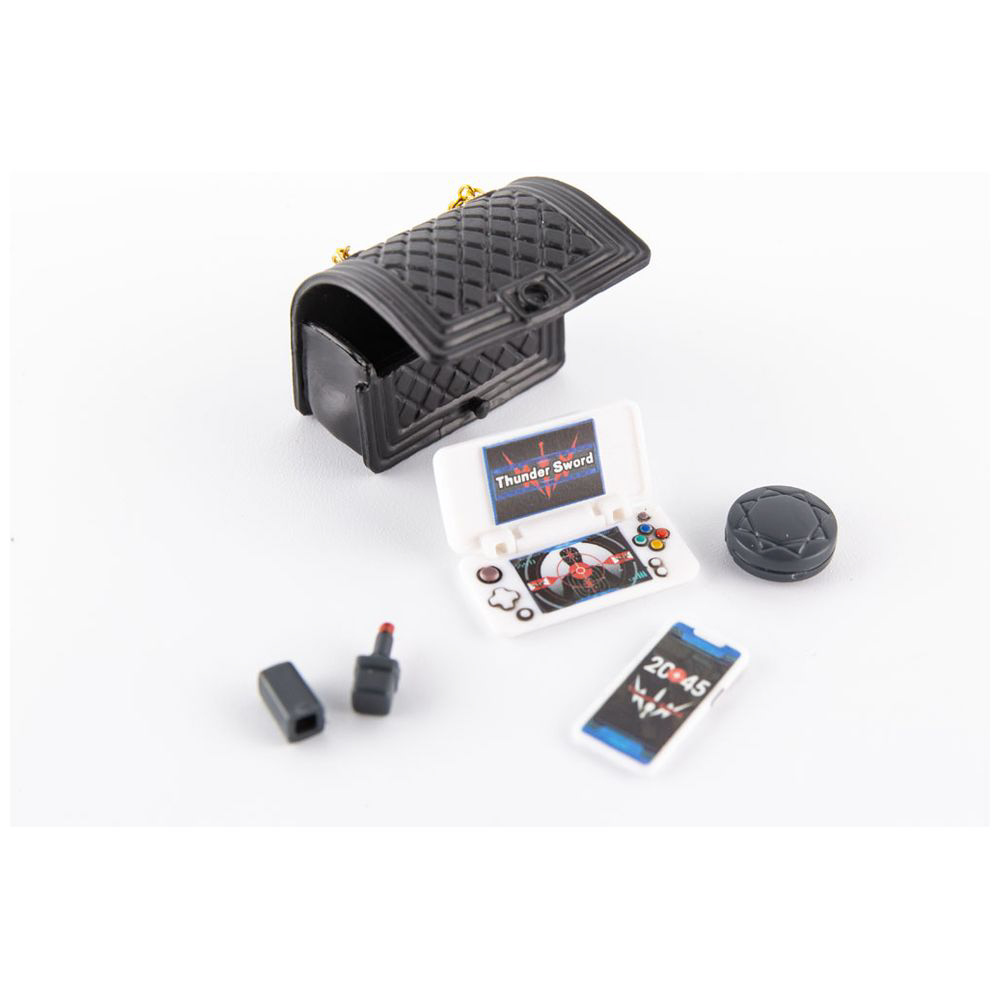 チェーンバッグや口紅、スマホなどの小道具も盛りだくさんです!