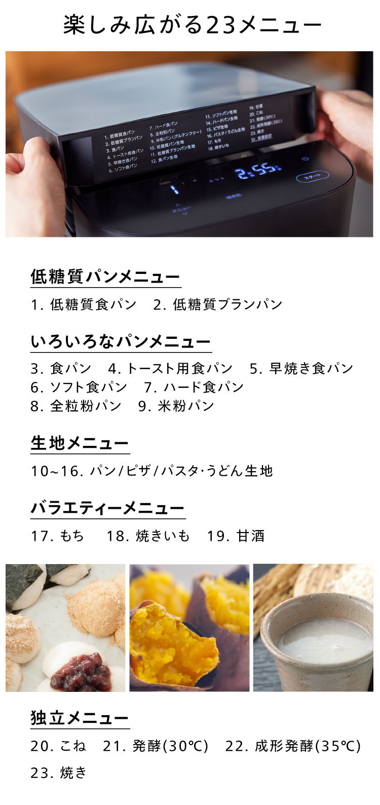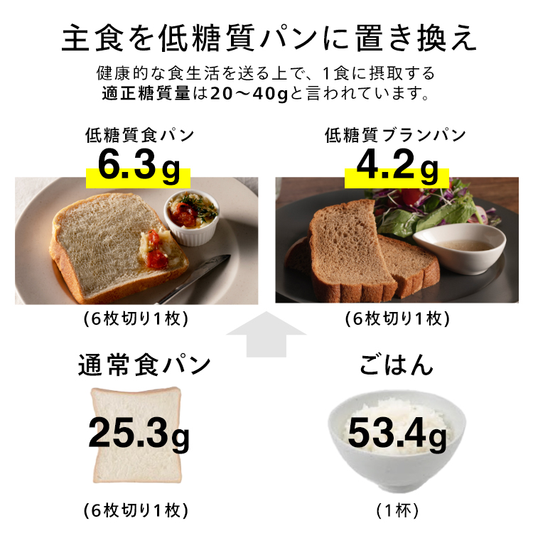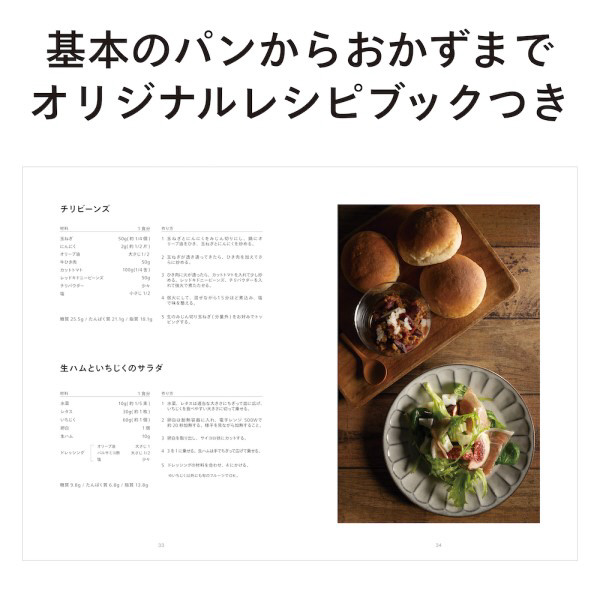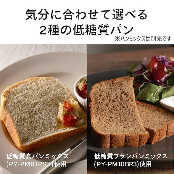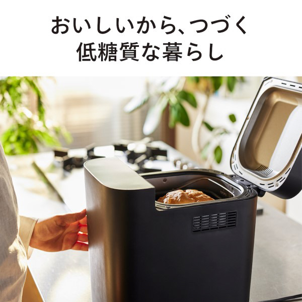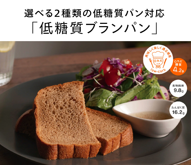 おいしい低糖質パンが焼けるホームベーカリー。選べる2種の低糖質パンで、無理なくつづく低糖質生活をサポートします。