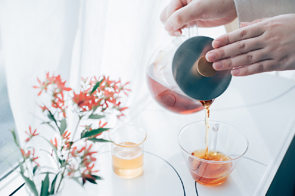 耐熱ガラス、ステンレス、天然木を使用したティーピッチャーです。
