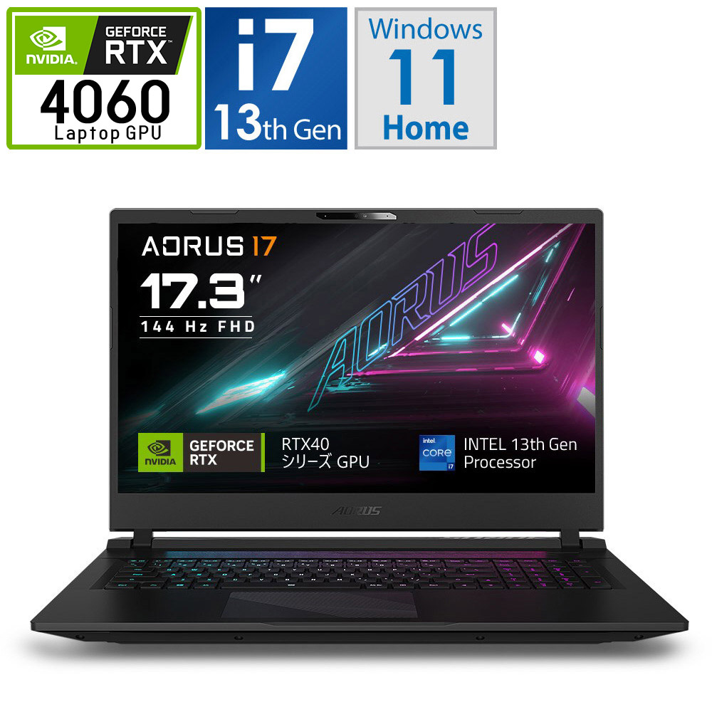 ゲーミングノートパソコン AORUS 17 ブラック AORUS17BKF-73JP254SH[RTX4060]