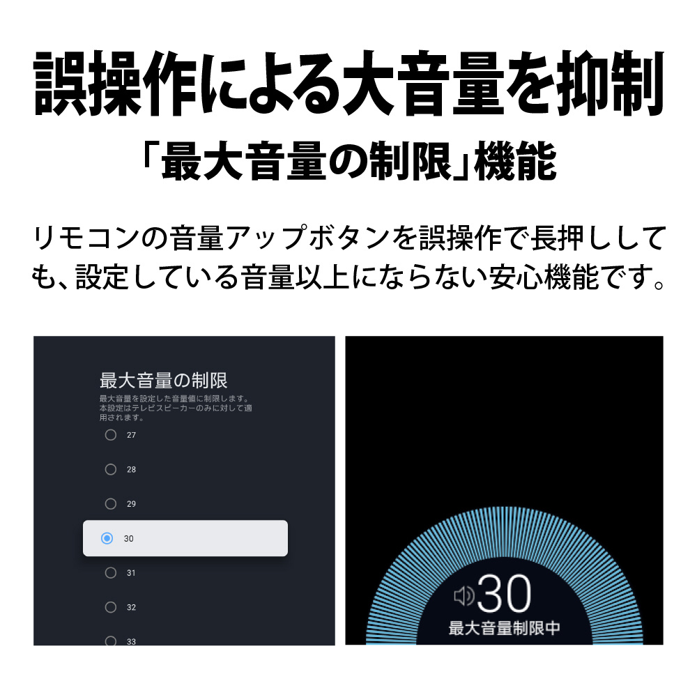 ・誤操作による大音量を抑制する「最大音量の制限」機能搭載。