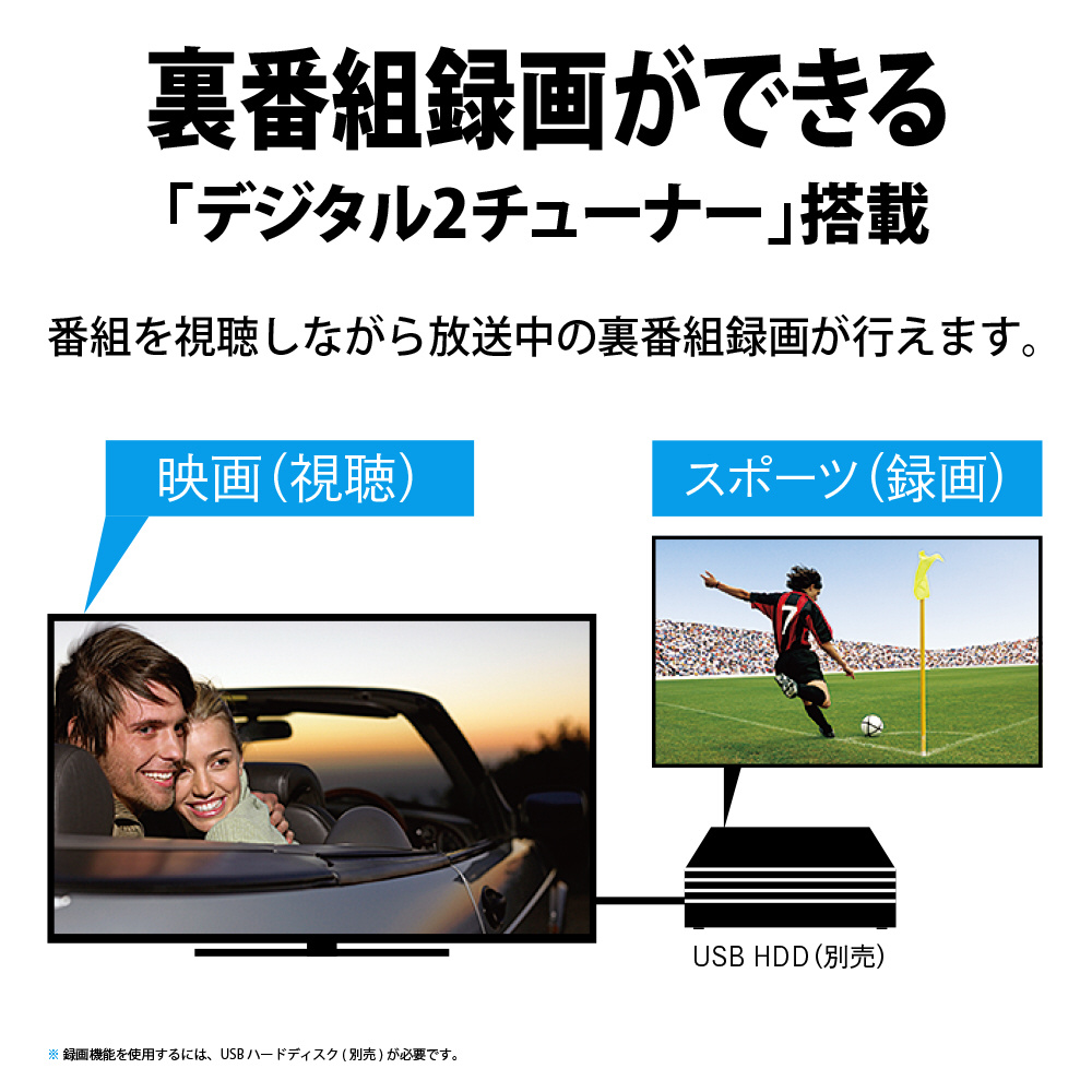 ・4K放送を存分に楽しむ4Kダブルチューナー内蔵。4K放送を視聴中に別の4K放送と地上・BS・CSデジタル放送の2番組同時裏録画が可能となります。