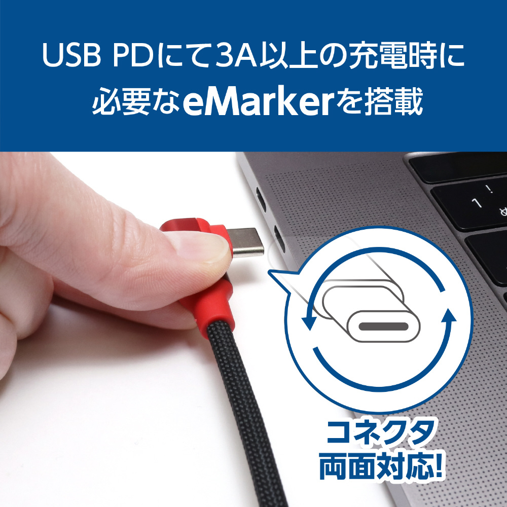 本製品はUSB PDにて3A以上の充電時に必要なeMarkerを搭載しています。