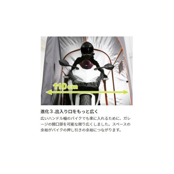 毎日の出動か長期の保管かを問わず、バイクの出し入れのしやすさにこだわったバイクガレージ2150スリム。