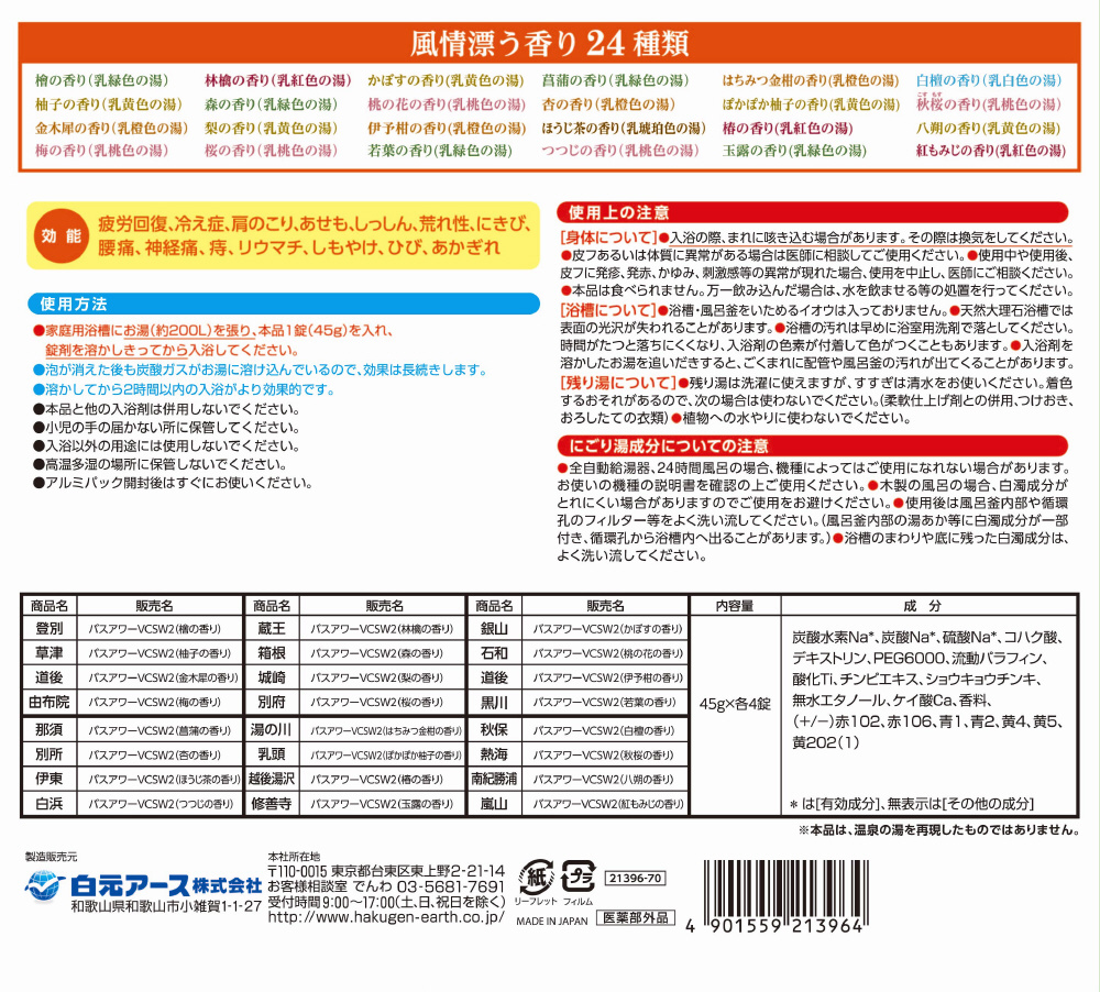 | 商品名 | いい湯旅立ち にごり炭酸湯 96錠入(24種類×4錠) |
