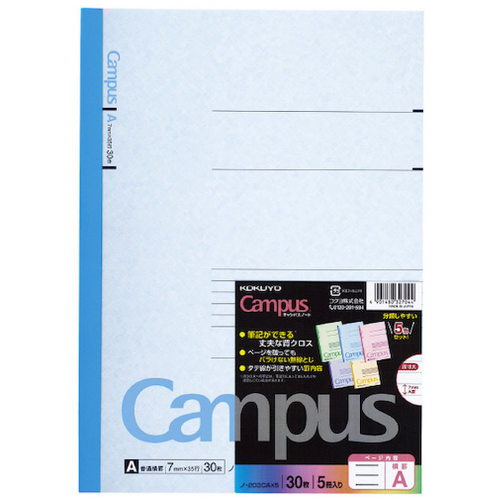 | 商品名 | ノート(カラー表紙) Campus(キャンパス) 5色パック 203CANX5 [A4 /7mm(A罫) /横罫線] 【864】 |