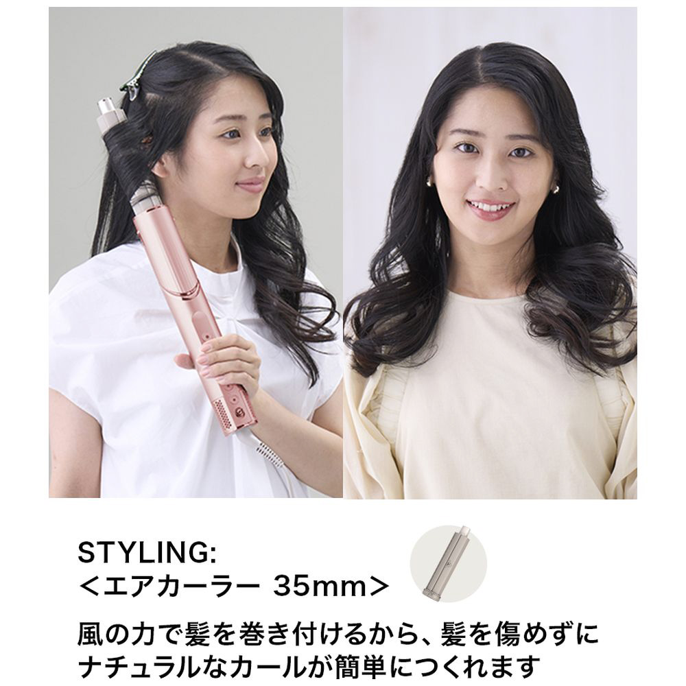 ■風の力で髪がカーラーに自動的に巻き付き、簡単にカールができる。温風で仕上げるため、髪に熱ダメージを与えずナチュラルなエアリーカールが実現。
