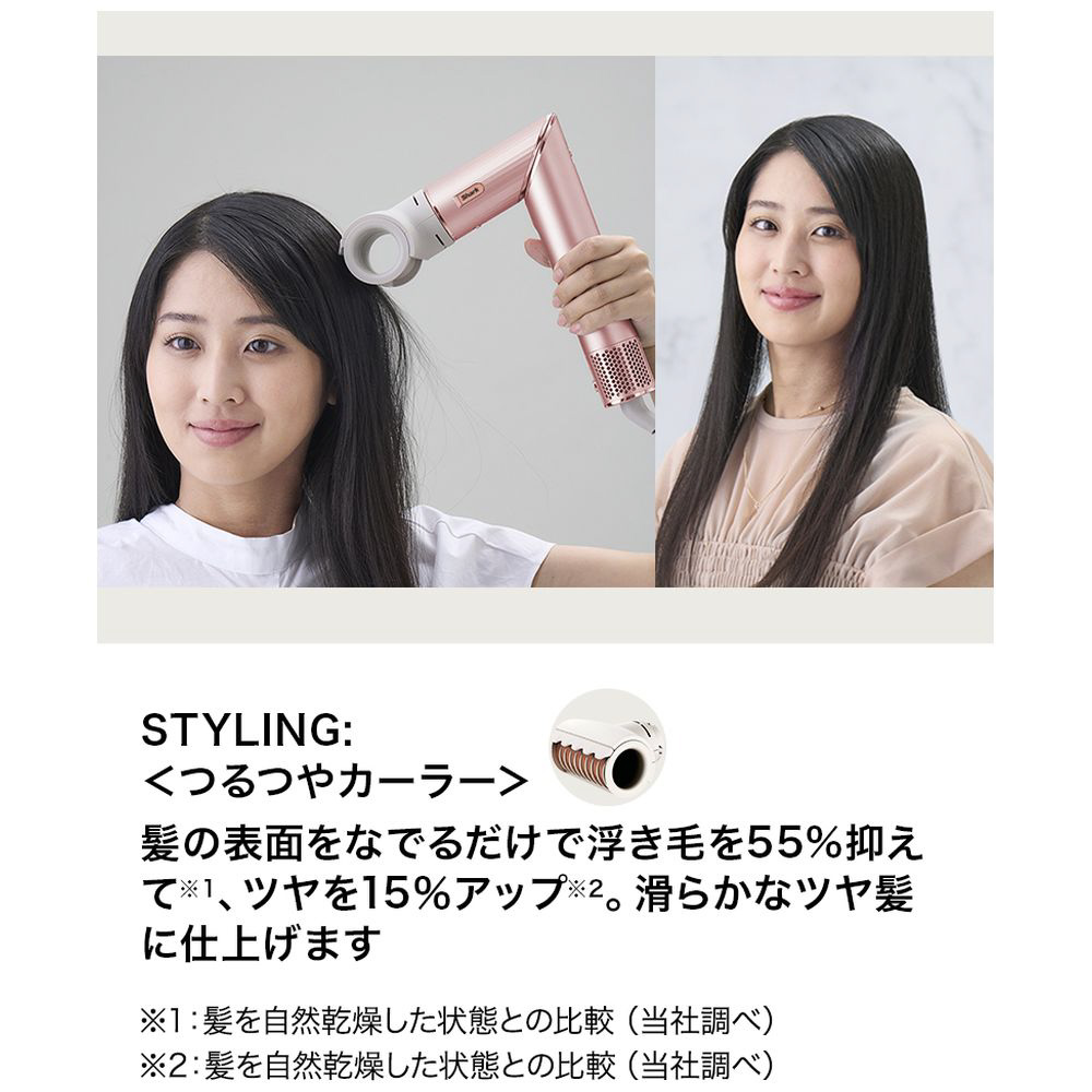 ブロー・カール・ストレート・ボリュームアップ・ツヤだしなど、様々なヘアスタイルを実現する多機能なマルチスタイリングドライヤーです。