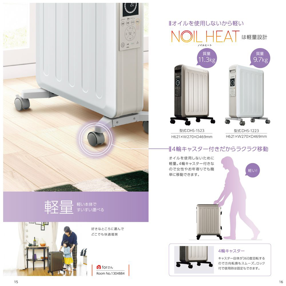 | 商品名 | オイルレスヒーターノイルヒート シャンパンブラウン DHS-1523 [最大13畳] |