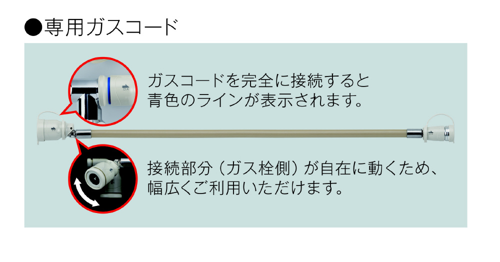 ガスコードは機種によって適切な長さがありますので、必ず適合する長さをご確認ください。