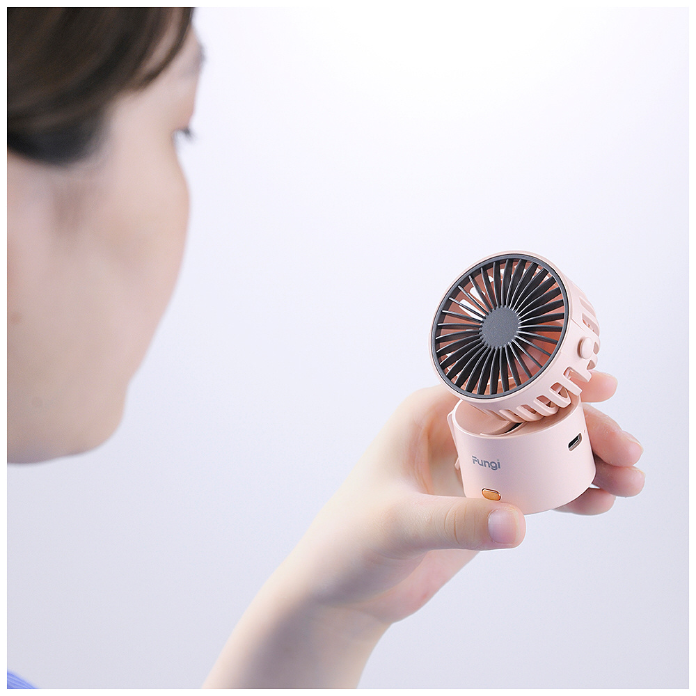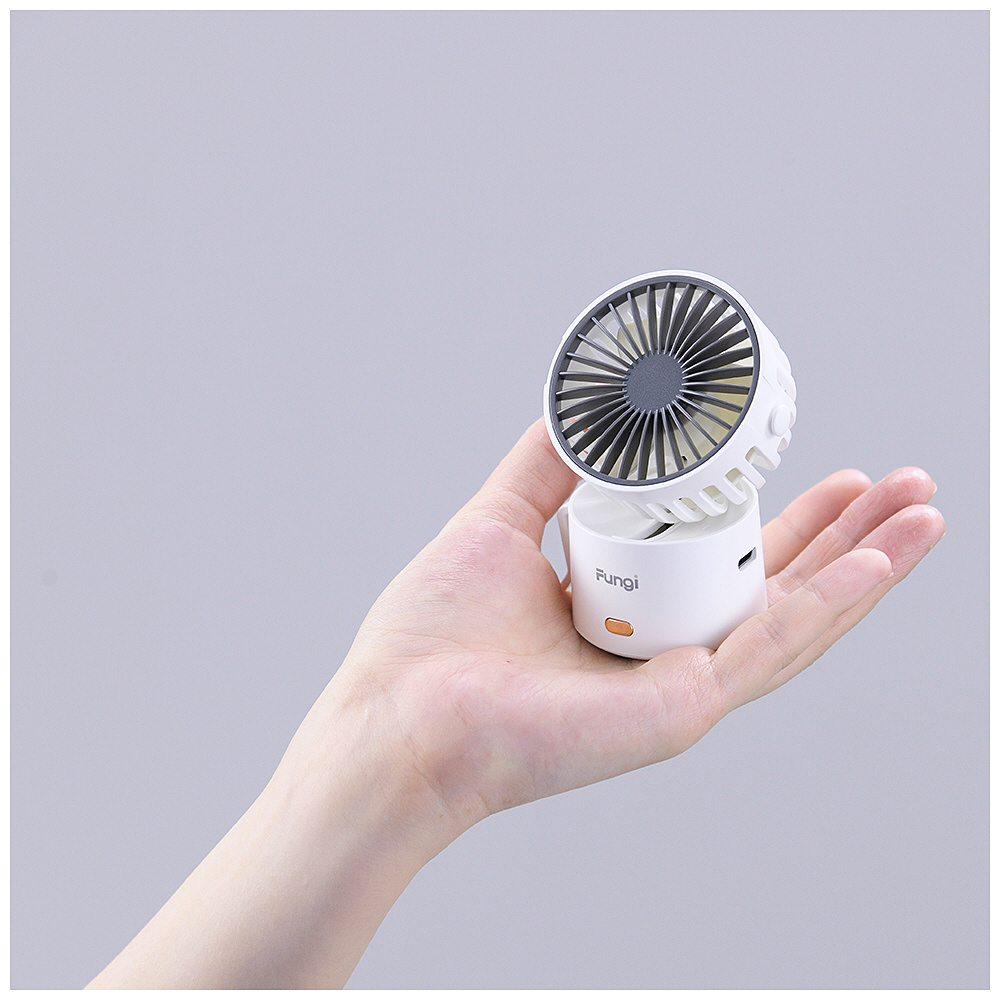 ストラップスタイルで置き型にも使えるミニ扇風機。