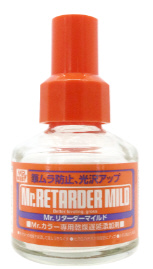 Mr.カラーに10%以下を添加して、よく混ぜるだけで乾燥が遅くなり、筆ムラやかぶり(表面が白くなったり、つやが斑状になる)も防止できます。
