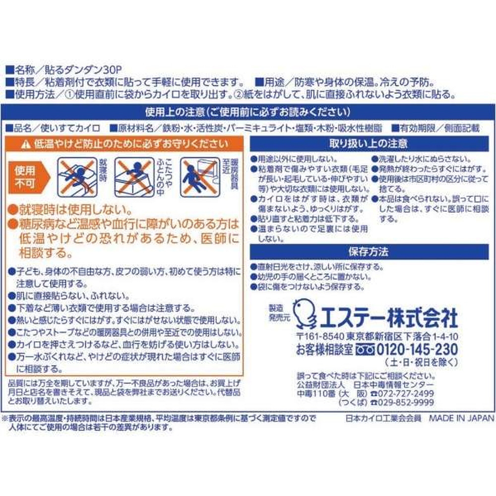 貼るダンダン 12時間持続 30個入 [レギュラーサイズ 貼る カイロ 使い捨てカイロ]