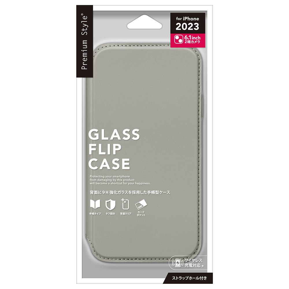 iPhone 15 ガラスフリップケース Premium Style グレー PG-23AGF04GY