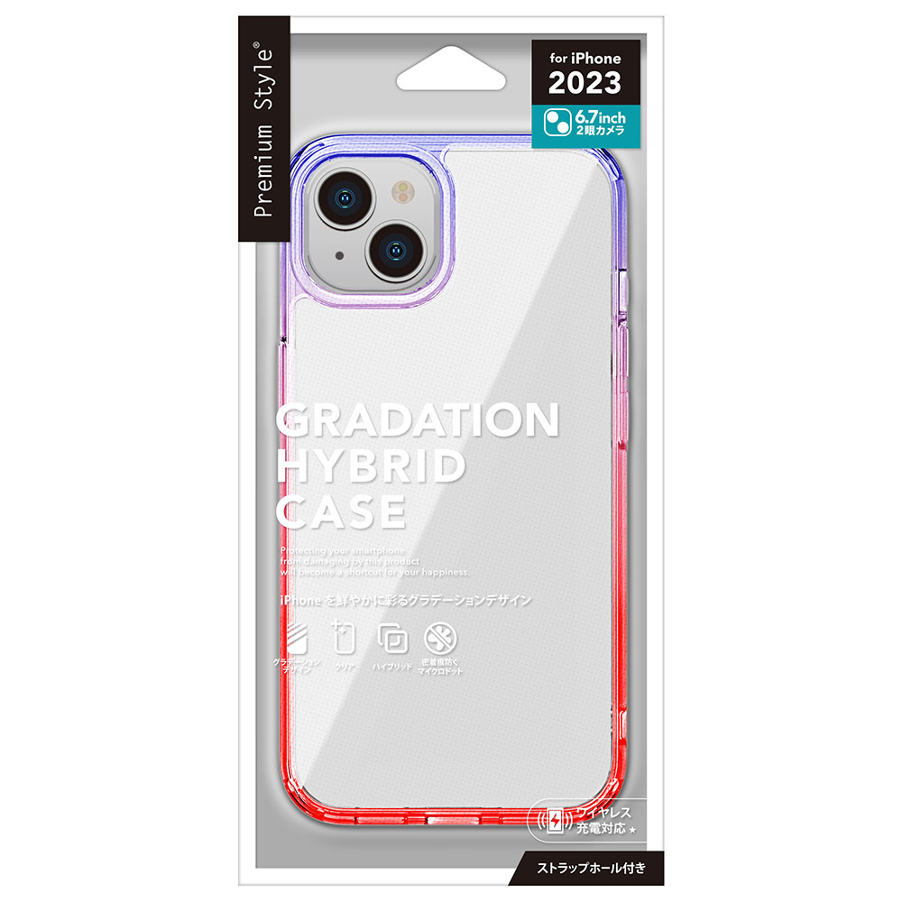 iPhone 15 Plus グラデーションハイブリッドケース Premium Style パープル×レッド PG-23CPT03PP