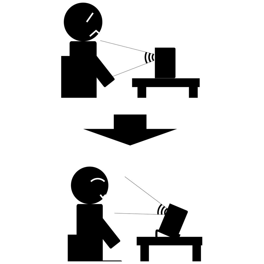 スピーカーに角度を付けることで、音を耳に届き易くし、モニタリング環境を改善。
