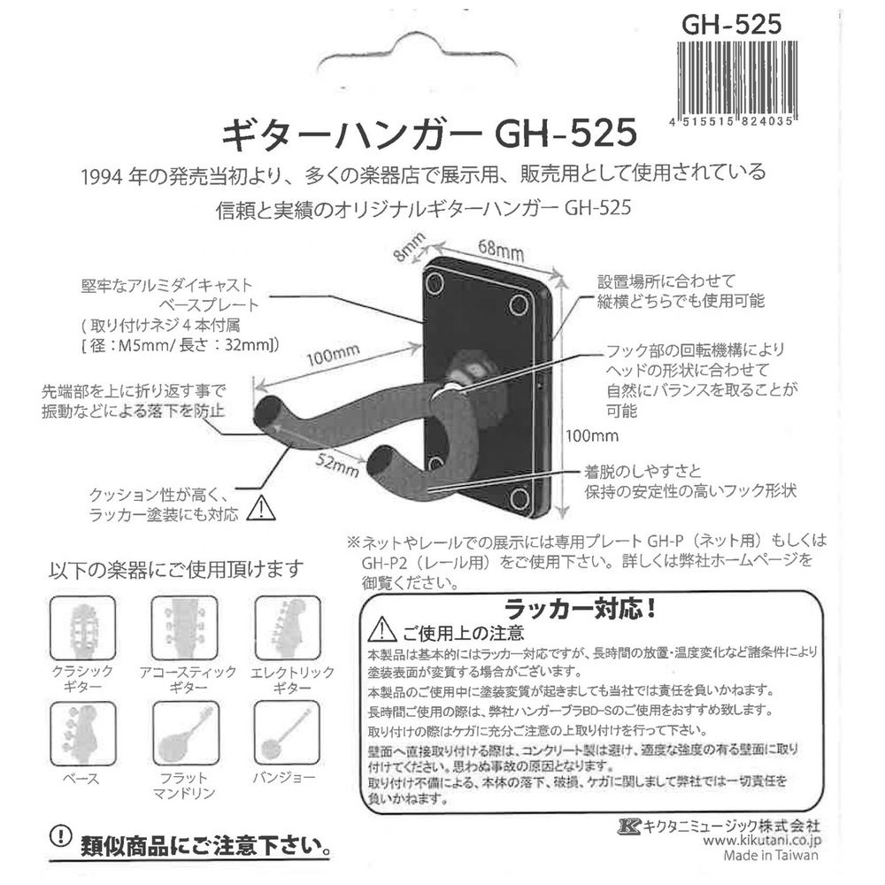| 商品名 | ギター・ハンガー ブラック GH-525 |