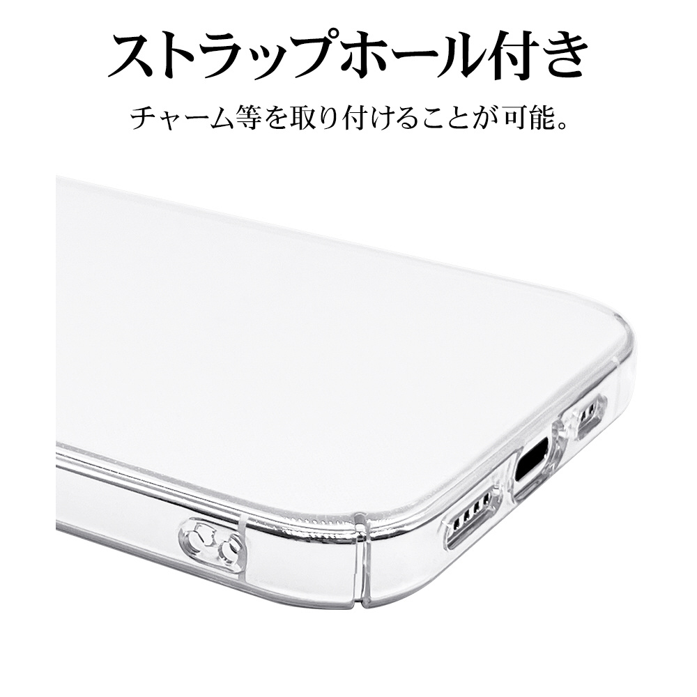表面にハードコート加工を施し傷がつきにくいシンプルなポリカーボネートクリアケースです。ストラップホール付き。