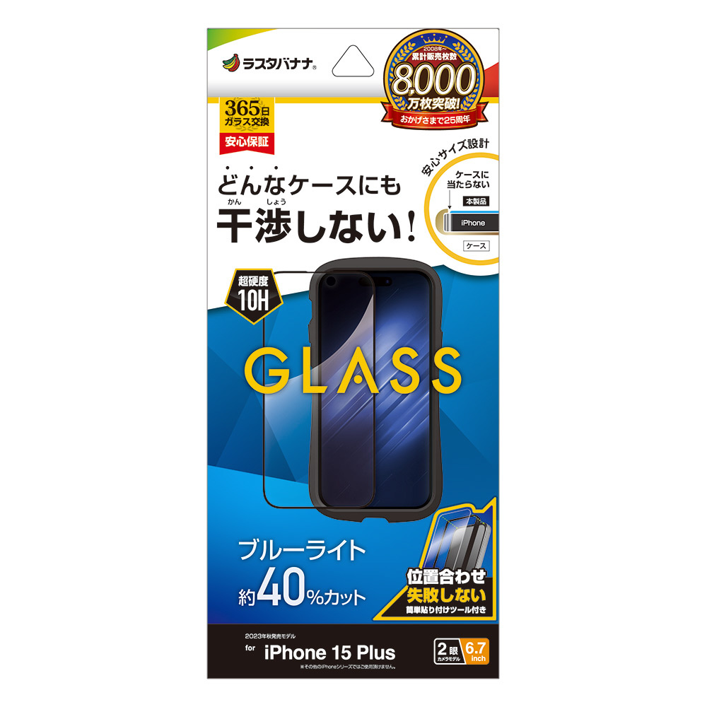 | 商品名 | iPhone 15 Plus ガラスフィルム ケースに干渉しない 絶妙設計フレームガラス ブルーライトカット 高光沢 簡単貼り付け治具付き |