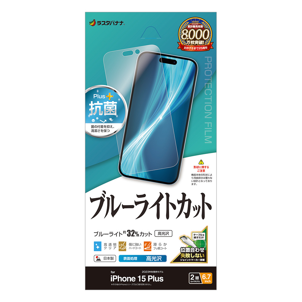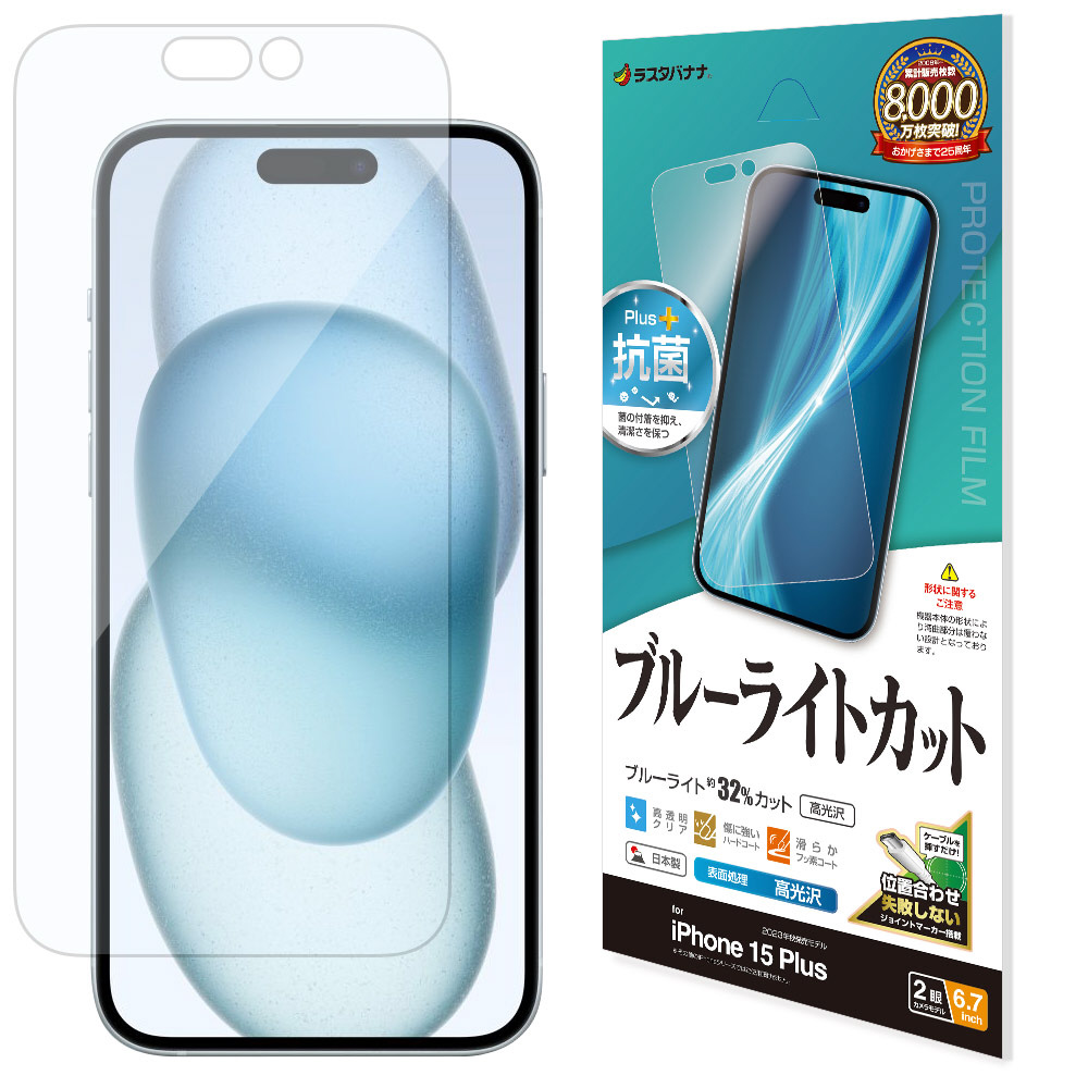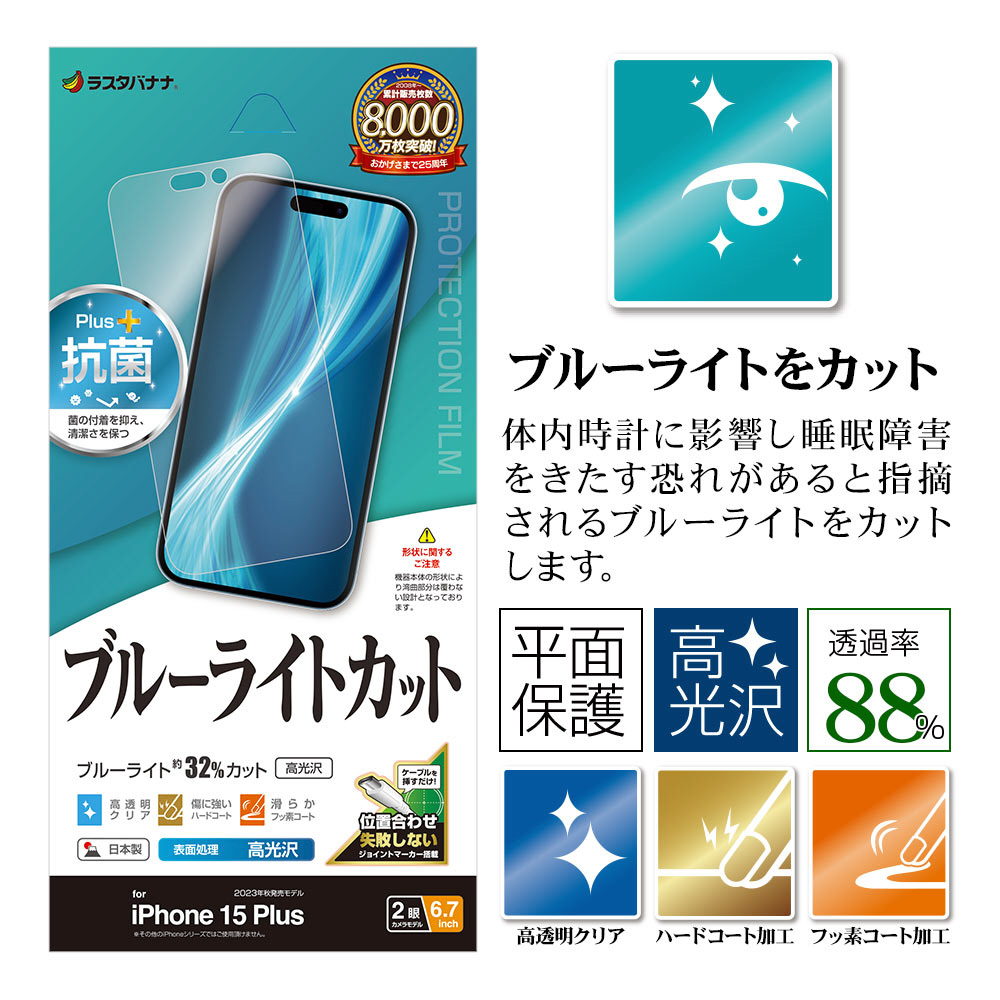 商品名 iPhone 15 Plus ブルーライトカット 高光沢フィルム