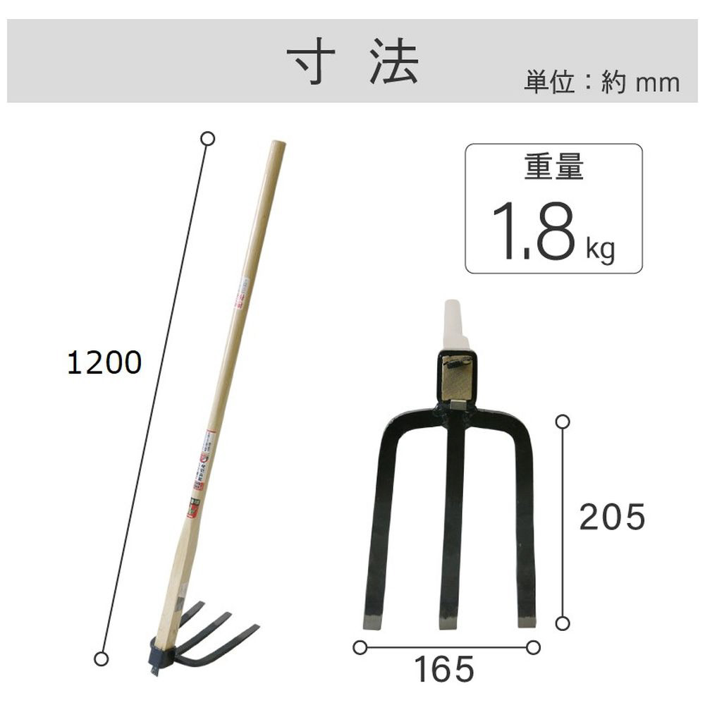 頭部(掘り起こし部)はスチール製三本爪タイプです。