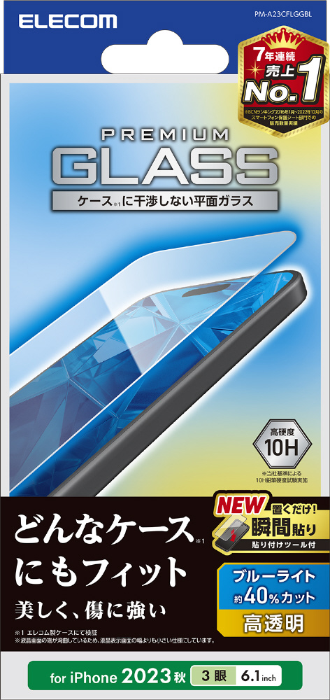 | 商品名 | iPhone 15 Pro ガラスフィルム 高透明 ブルーライトカット PM-A23CFLGGBL |