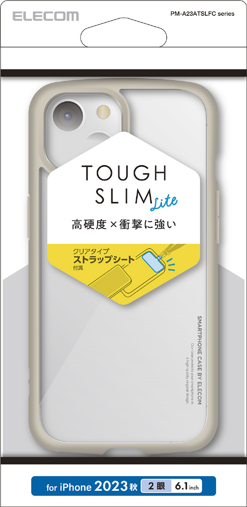 iPhone 15(6.1インチ) ハイブリッドケース TOUGH SLIM LITE フレームカラー 背面クリア ストラップシート付属 グレージュ PM-A23ATSLFCGB 【864】