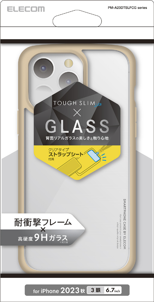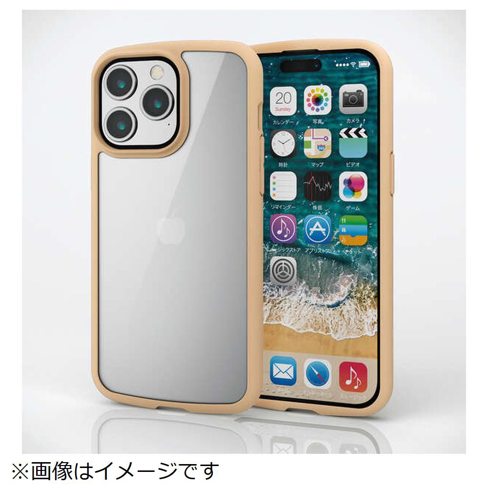 iPhone 15 Pro Max(6.7インチ) ハイブリッドケース TOUGH SLIM LITE フレームカラー 背面クリア 背面ガラス ストラップシート付属 カフェオレ PM-A23DTSLFCGBE 【864】