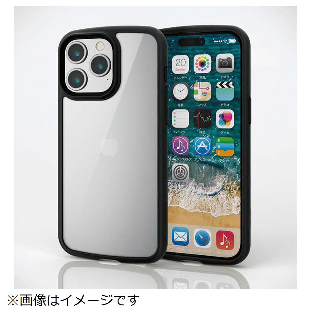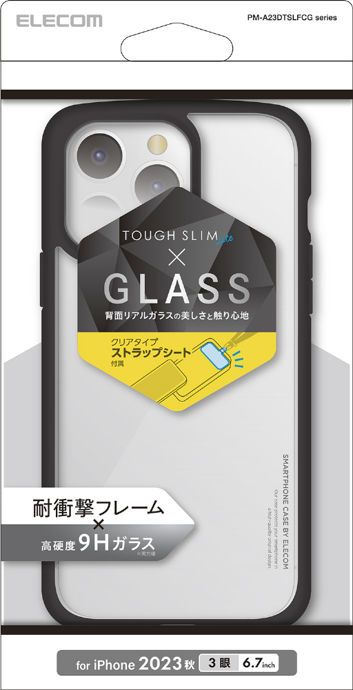 iPhone 15 Pro Max(6.7インチ) ハイブリッドケース TOUGH SLIM LITE フレームカラー 背面クリア 背面ガラス ストラップシート付属 ブラック PM-A23DTSLFCGBK 【852】