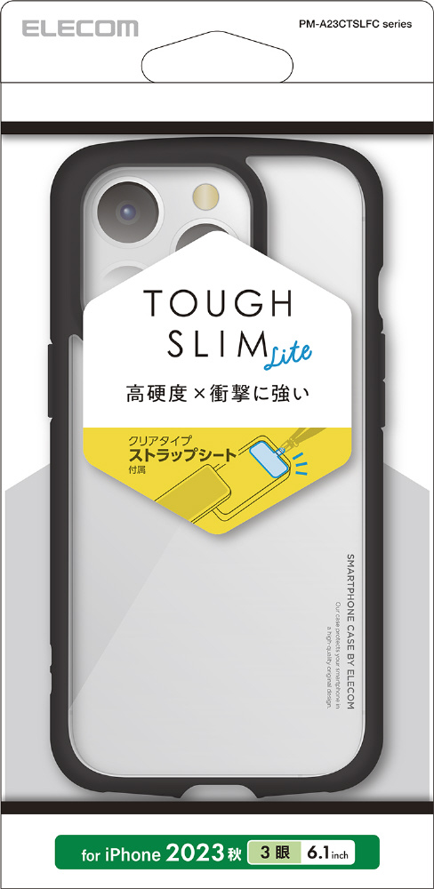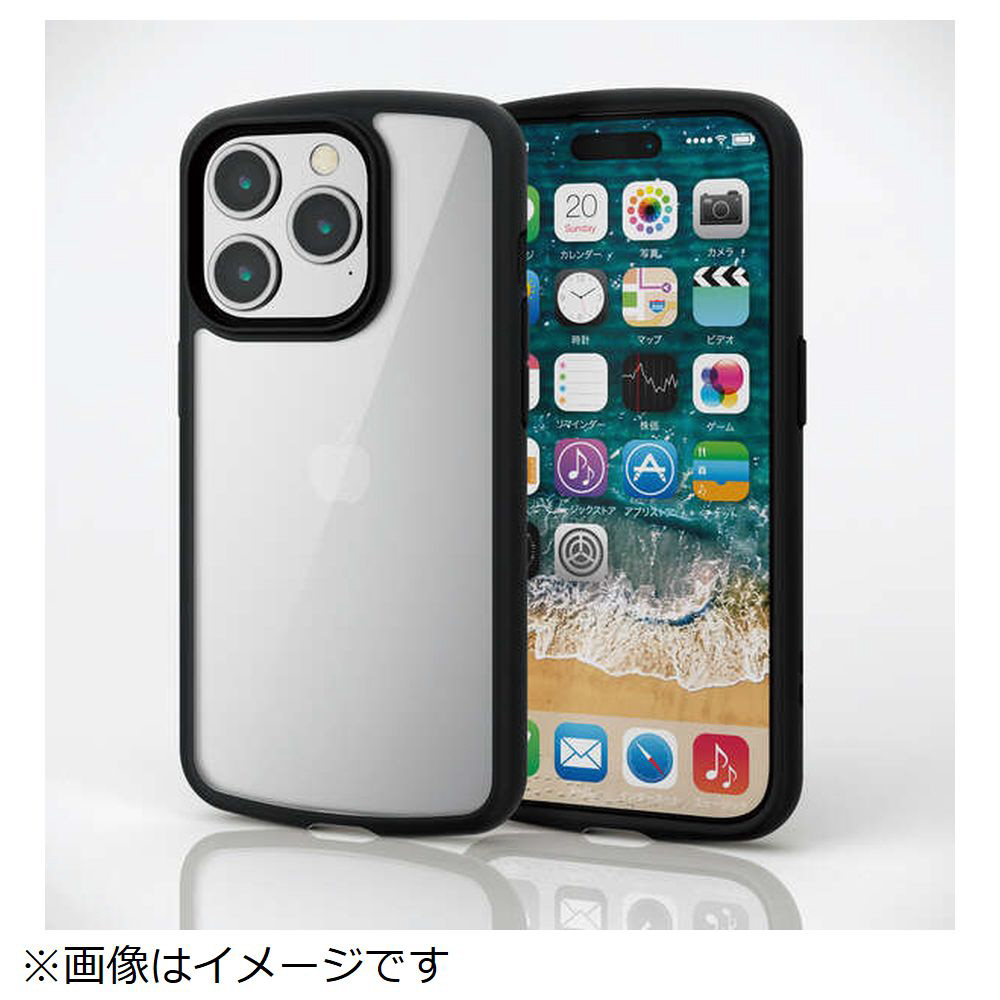 iPhone 15 Pro(6.1インチ) ハイブリッドケース TOUGH SLIM LITE フレームカラー 背面クリア ストラップシート付属 ブラック PM-A23CTSLFCBK