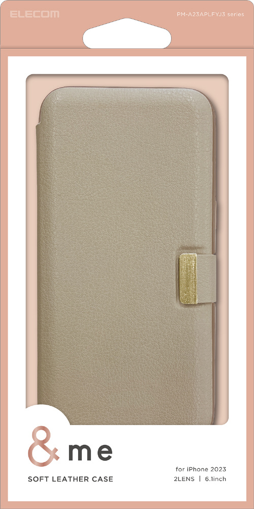 | 商品名 | iPhone 15 レザーケース 手帳型 磁石付き &Me グレージュ PM-A23APLFYJ3GB |