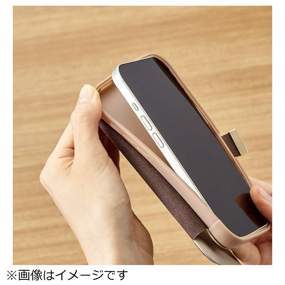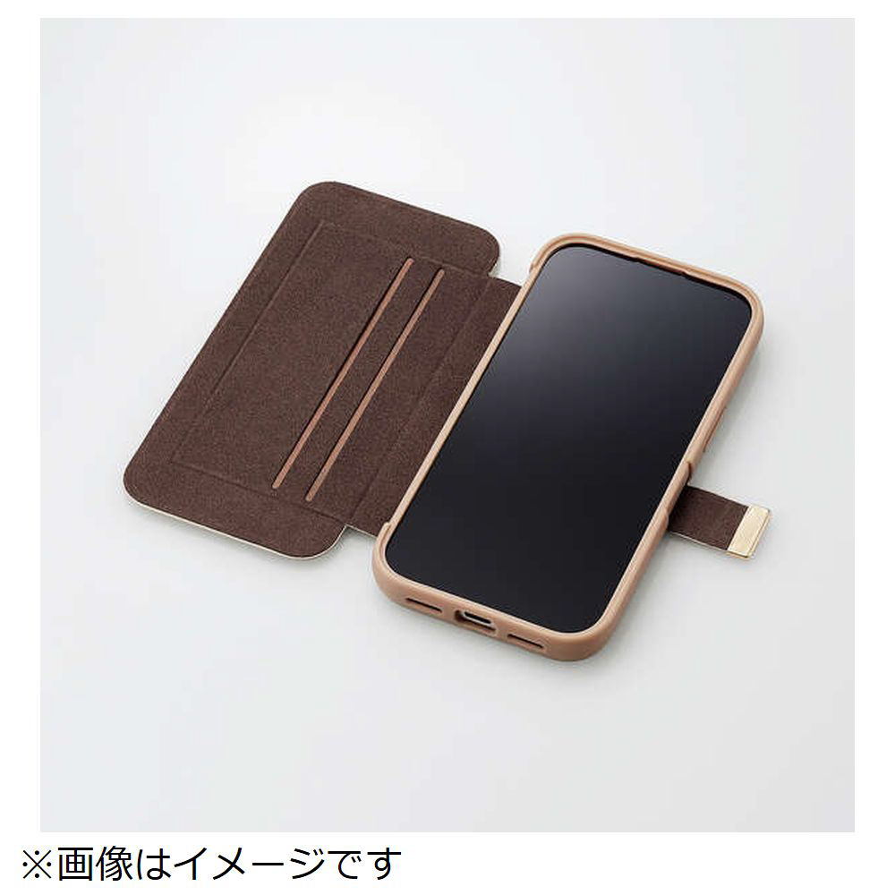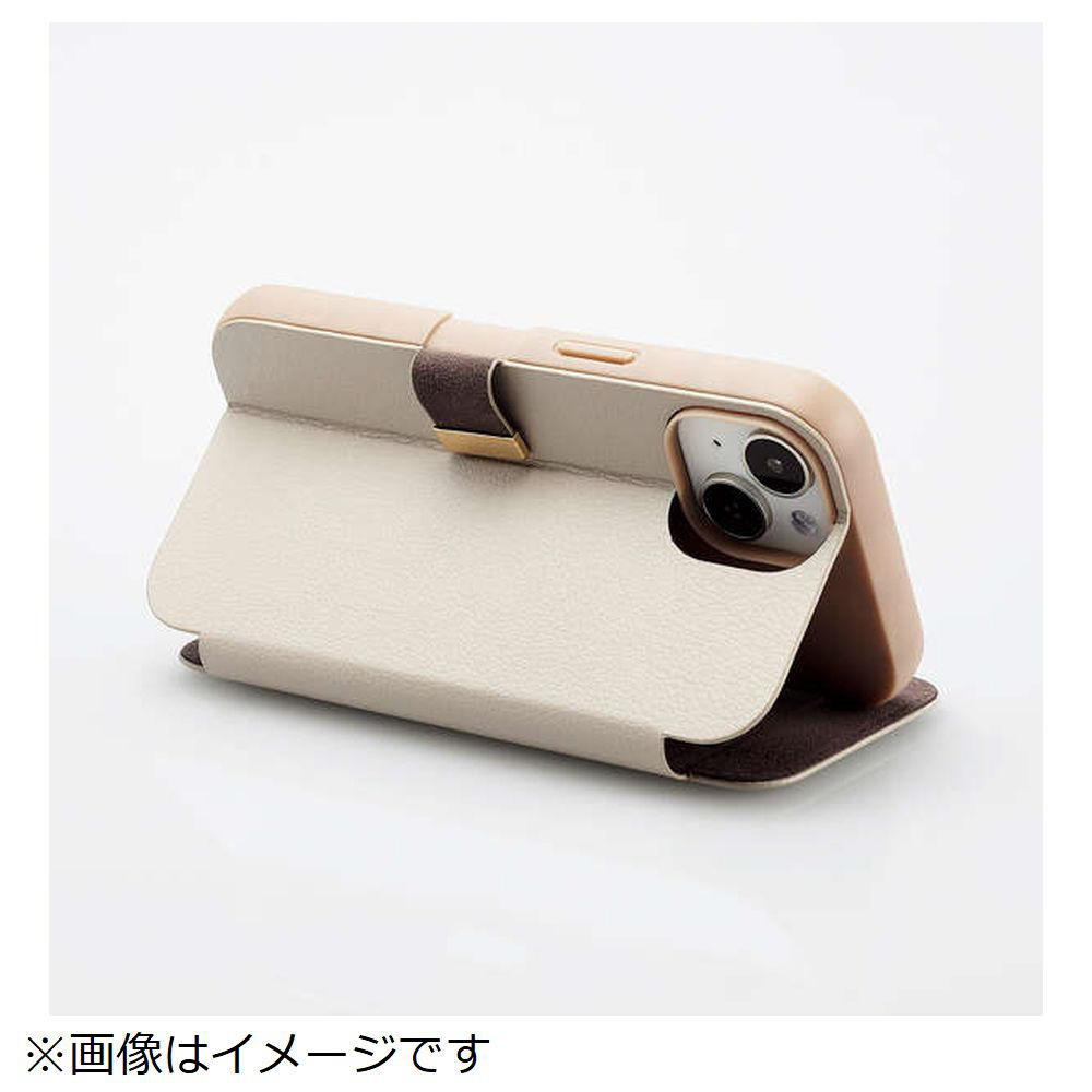 iPhone 15 レザーケース 手帳型 磁石付き &Me グレージュ PM-A23APLFYJ3GB