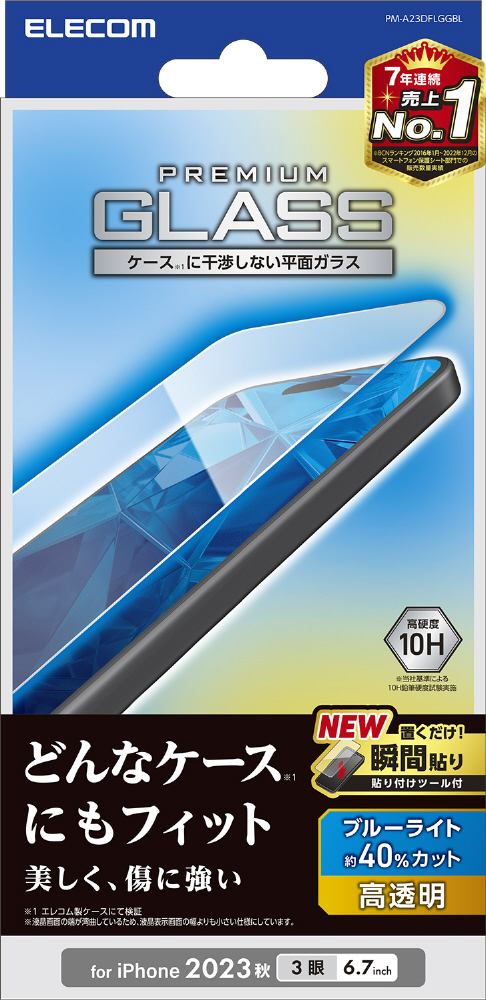 | 商品名 | iPhone 15 Pro Max(6.7インチ) ガラスフィルム 高透明 ブルーライトカット PM-A23DFLGGBL |