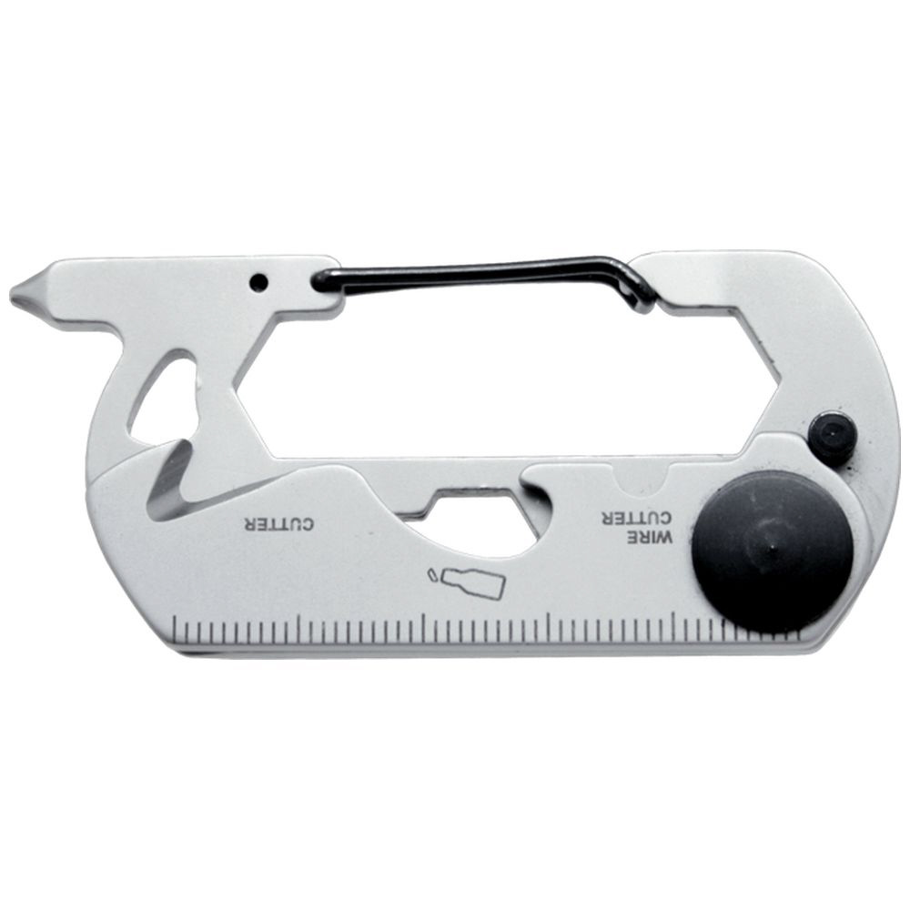 11のツールを搭載した携帯性に優れたカラビナサイズのツール。