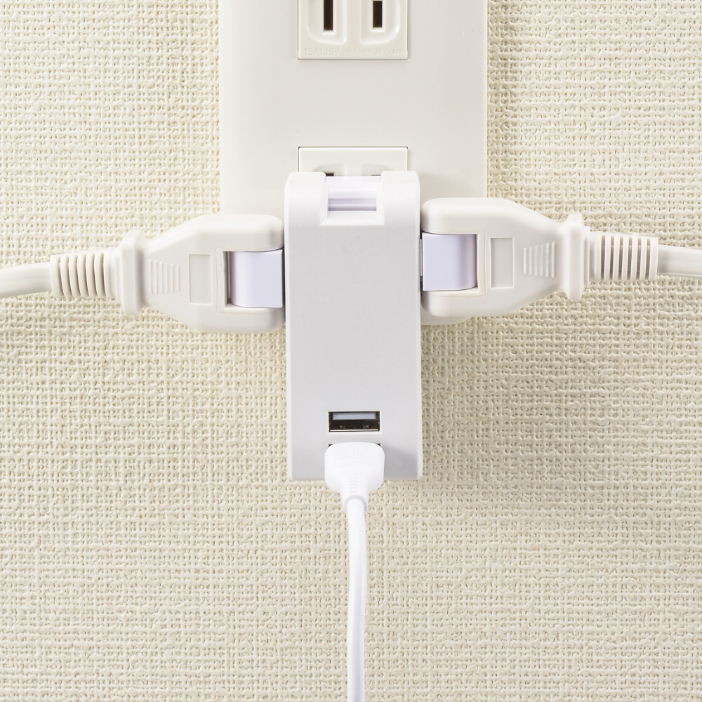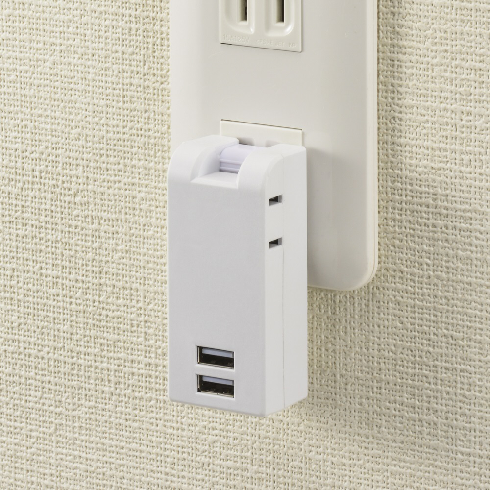 スマホ2台を同時充電できる、USBポート付安全タップ