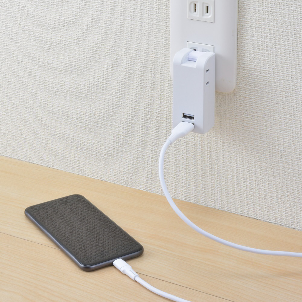 ● スマホ2台を同時充電できる、USBポート付安全タップ
