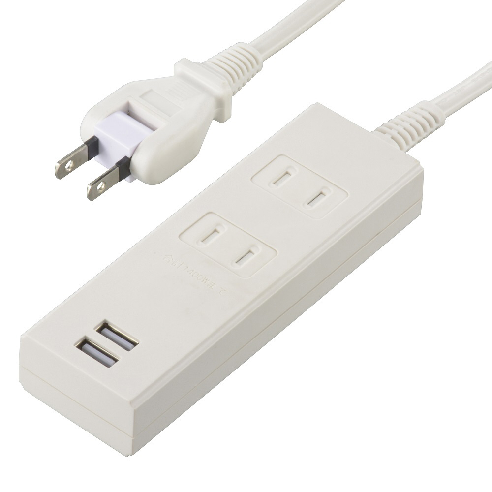 USB付き電源タップ 白 OBR-T222A-W [2.0m /2個口 /スイッチ無 /2ポート]