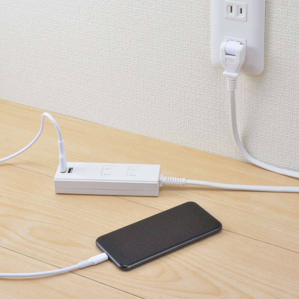 スマホ2台を同時充電できる、USBポート付安全タップ